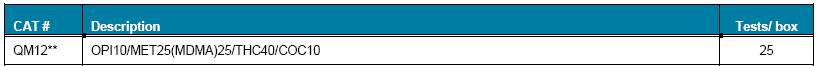 qualitativa di marijuana (THC), cocaine, oppiacei, metamfetamine compreso MDMA (Ecstasy) ed altre sostanze derivate nella saliva.